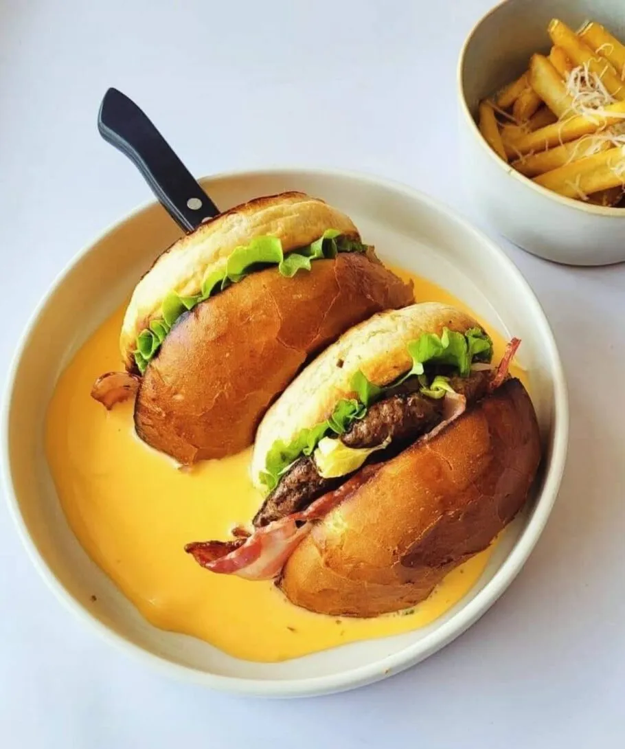 wołowina 170g / pomidor / sałata / ogórek kiszony / czerwona cebula / mayo / sos amreykański